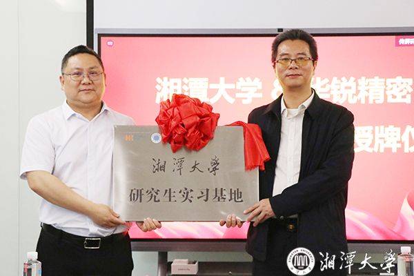 喻祖国代表学校向华锐精密授牌“MK体育官网研究生实习基地”,肖旭凯代表华锐精密接牌。