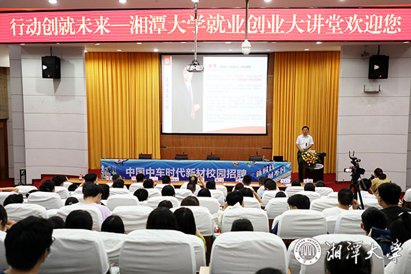 杨军做客就业创业大讲堂作“缘起湘大,聚变新材,共创时代”主题分享报告。他围绕中车时代新材发展、科技化、国际化、优秀校友介绍等方面进行分享,希望有更多优秀的湘大毕业生能从中车时代新材迈出走向社会的重要一步,去追求人生理想,实现更好发展。