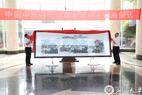 “湘大求学经历是我人生中非常幸福的时光,不仅是我个人的成长成才,更重要的是遇见了许多良师益友。我感恩母校和老师培育了我,无论走到哪儿,我都会自豪地说‘我是湘大毕业的’!”赠画仪式上,荣继刚追忆往昔,心潮澎湃,“中车时代新材的200多位校友向母校赠送的中国画,主题是‘云峰竞秀’,我们共同祝愿母校千峰竞秀,万木争春,桃李满天下。”