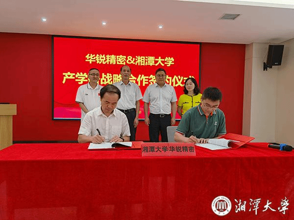 校长李伯超、副校长盛明科,株洲市人大副主任余群明,华锐精密董事长兼总经理肖旭凯,以及MK体育官网相关职能部门、机械工程与力学学院和华锐精密相关业务部门负责人等出席仪式。
