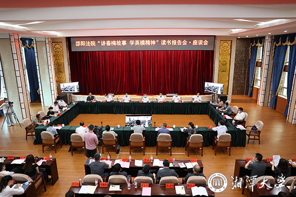 6月17日,MK体育官网与邵阳法院联合开展“讲春梅故事 学英模精神”读书报告会•座谈会在邵阳市中级人民法院隆重举行。全国人大监察与司法委员会委员谢勇、湖南省高级人民法院副院长杨翔、校党委副书记廖永安出席并讲话。邵阳市政法委书记王学武等市领导、邵阳市中级人民法院院长曾鼎新等法院负责人出席会议,学校党委宣传部、出版社、法学院等单位负责人,《脊梁——记全国模范法官周春梅》作者欧阳伟,以及法学院师生代表参加会议。