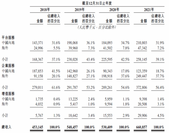 具体来看,快狗打车目前涵盖三大业务,分别为平台服务、企业服务、增值服务。其中,平台服务通过在平台上匹配司机及托运人,促进按需同城物流,2021年该业务占总收入的39.1%;企业服务则是为企业客户提供计划及按需同城物流服务,2021年该业务占比56.4%,撑起了营收的半壁江山;剩下的4.5%即为增值服务。