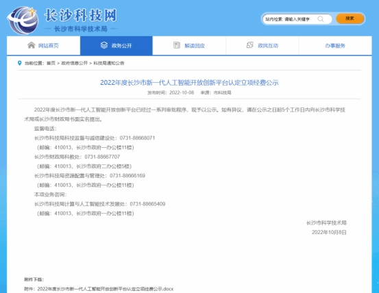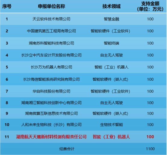 近日,2022 年度长沙市新一代人工智能开放创新平台认定立项经费完成网上公示。其中,由 湖南航天天麓新材料检测有限责任公司牵头,湖南韶峰应用数学研究院 联合申报的智能(工业)机器人领域“工业智能检测机器人开放创新平台”成功入选长沙市新一代人工智能开放创新平台,并获得 100 万元的经费支持。