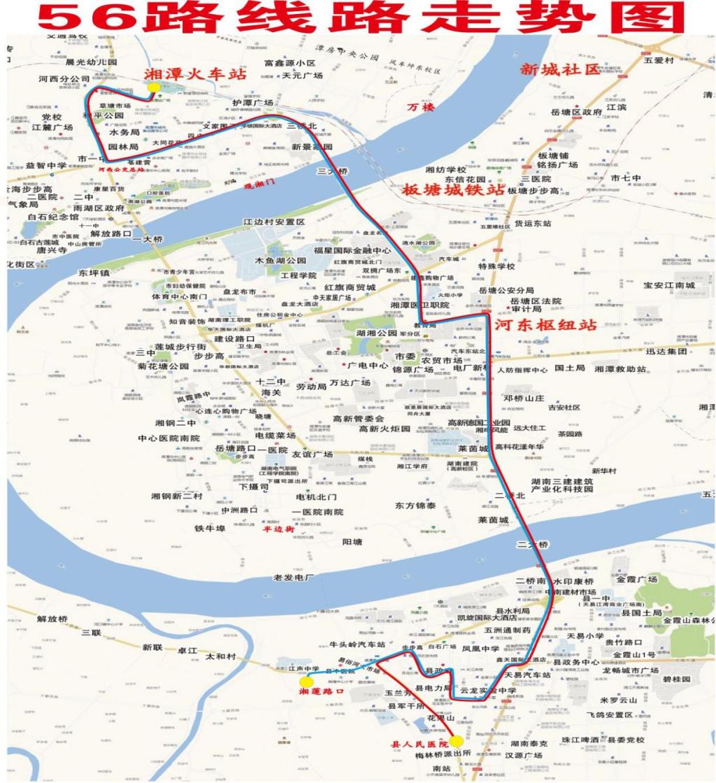 调整理由:下摄司大桥通车后56路湘莲路口首末站将取缔。