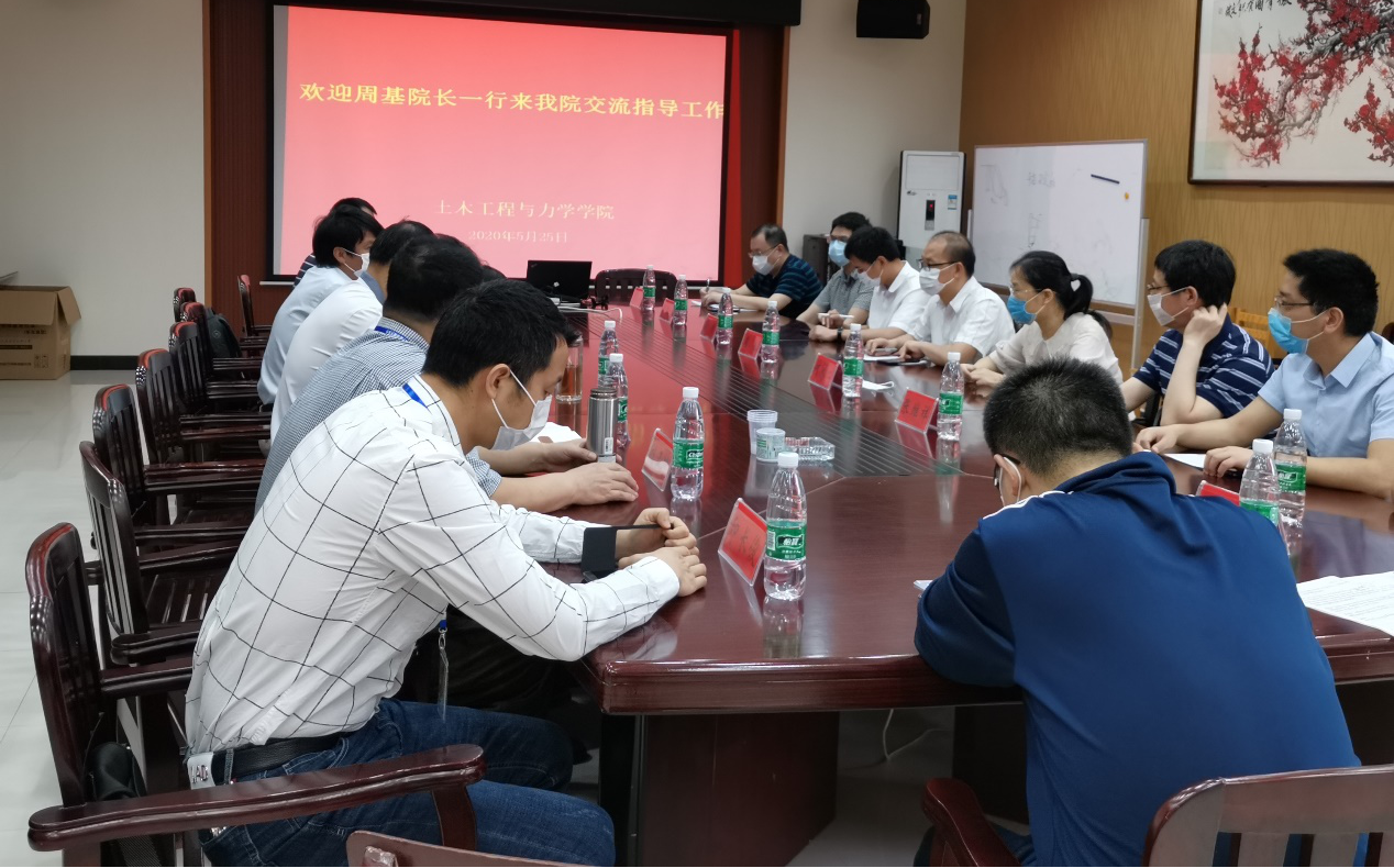 2020年5月25日,湖南科技学院土木与环境工程学院院长周基一行莅临我院洽谈对口支援工作,共同商讨两院日后在教育、人才培养以及科研等方面的合作。会议在土木楼A-332会议室召开。本次会议由MK体育官网土木工程与力学学院院长龙志林教授主持。MK体育官网土木工程与力学学院党委书记陈幸华;副院长赵荣国;教授代表刘正才,丁燕怀,邓代强;系主任代表印长俊,赵少杰;办公室主任易晓;科研秘书陈秋池参加本次会议。