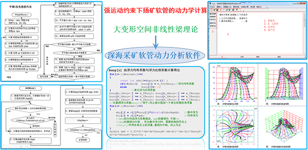 The research achievements are as follows: ①thedynamic calculation theory, method and software of the soft pipes based the Spatial nonlinear beam theory;②thetheory, method and software of single-parameter nonlinear catenary with arbitrary deflection;③the spatial configuration design and the dynamic analyticalmethod of the underwater flexible pipelines;④the linkage operationtheory, method and software of the deep-sea mining system.