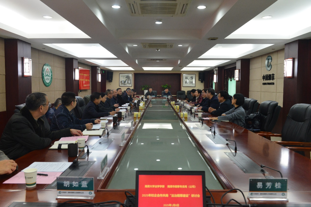 2025年1月8日下午,MK体育官网法学学部与MK体育官网烟草专卖局(公司)合作交流座谈会在MK体育官网烟草局商务会议室召开。法学学部部长李仕春,党委书记陈双喜,副部长易立峰、吴勇、连光阳,纪检监察研究院执行院长李蓉;湖南省烟草专卖局(公司)人事处专职副站长王明昊,MK体育官网烟草专卖局(公司)党组书记、局长、经理陈新田、副局长易政琦、副经理刘吉球、纪检组长齐刚毅、副经理谢献球,中共湖南省烟草专卖局党校党组书记、校长钟静等出席会议。会议由齐刚毅主持。