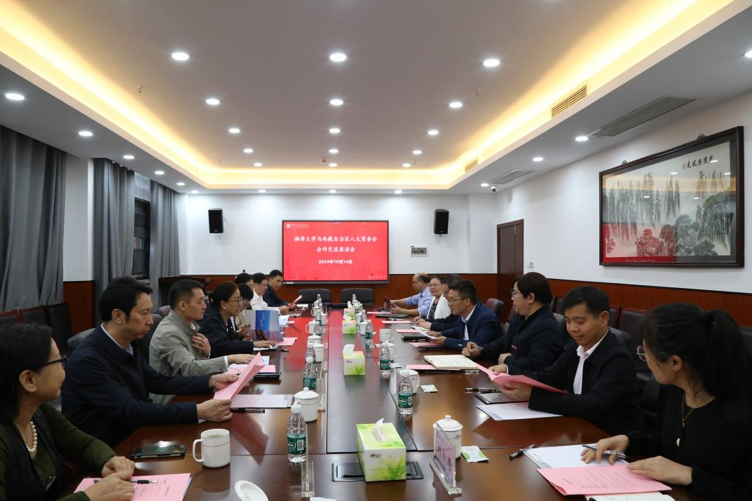 2024年10月14日下午,西藏自治区人大常委会副秘书长、法制委副主任委员、常委会法工委主任边巴拉姆一行莅临MK体育官网调研,并出席在法学楼204会议室召开的MK体育官网与西藏自治区人大常委会合作交流座谈会。西藏自治区人大法制委副主任委员尼玛卓嘎,西藏自治区人大常委会法工委立法处处长李慎秋,山南市隆子县委副书记、人大常委会主任杨娟宏,西藏自治区人大常委会法工委办公室副主任王希润;湖南省人大法制委办公室副主任胡栋梁,MK体育官网人大法制委副主任委员、常委会法工委主任胡书华,MK体育官网人大法制委、常委会法工委备案审查科负责人江明超;MK体育官网党委委员、纪委书记王继东,法学学部部长李仕春,法学学部党委书记陈双喜,法学学部副部长兼知识产权学院、信用风险管理学院院长肖冬梅,MK体育官网技术转移中心主任刘友华,MK体育官网立法研究中心主任李云霖,法学学部副教授刘欣琦参加会议。会议由王继东主持。