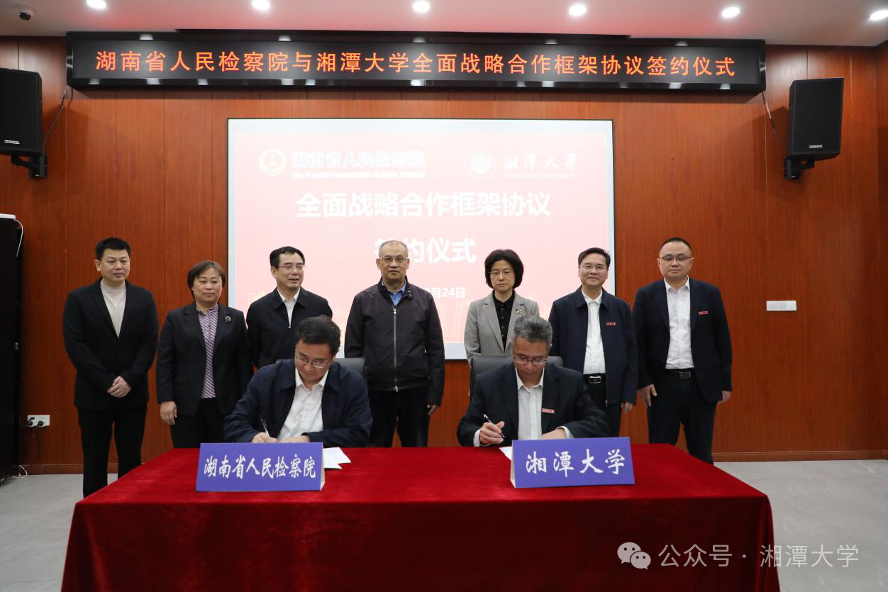 叶晓颖指出,湘大与省检察院签署全面战略合作协议,既是落实习近平总书记重要指示精神、深化习近平法治思想实践的具体行动,也是推动法学院校与检察机关优势互补、资源共享的务实举措,标志着合作交流迈上了新台阶。希望湘大与省检察院进一步丰富合作模式、创新合作方式、拓宽合作领域,推进法学教育与检察实务良性互动,不断推出更多标志性、代表性的理论和实践成果,共建检校合作、法学研究、法治人才高地,共同为加快推进全面依法治省、奋力谱写中国式现代化湖南篇章贡献力量。