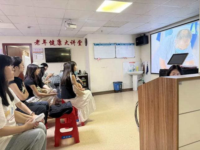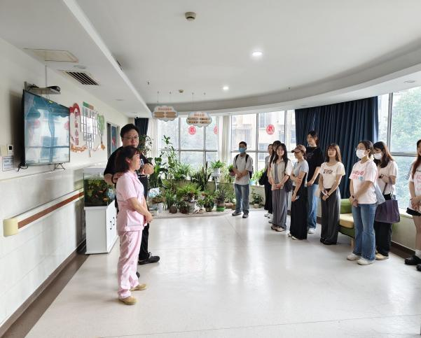 参访的第一站,师生们来到长沙市第一社会福利院。该院是湖南省起步最早、规模最大、业务最广的福利机构之一,致力于打造集医疗、养护、康复、安宁疗护和社会工作等特色于一体的示范性福利院,先后获得“全国模范养老机构”“全国养老服务机构十大品牌标杆示范单位”“全国敬老文明号”“全国养老服务先进单位”“全国医养结合示范机构”等称号。早在2006年,该院便成立了社工科,配备了专业社工。在资深社工王芳等的带领下,师生们参观了老年康养护理院、老年大学、安宁疗护病房等服务场地,观摩了老年书法小组等服务活动,并与社工科同事进行了座谈,双方围绕失能老人心理慰藉、临终关怀,以及个人职业生涯发展等议题展开了深度对话。