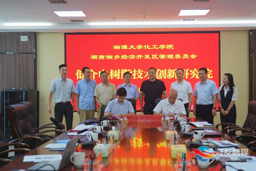 签约仪式上,湘乡经开区管委会与MK体育官网化工学院签订了关于联合成立“低介电树脂技术创新研究院”产学研战略合作协议。根据协议,双方将以“资源共享、协同创新、产教融合、服务产业、风险共担、利益共享”为原则,在产学研协同创新、科技成果转化、人才培养等方面深化合作,共同推进区域经济高质量发展与高水平应用型大学建设。