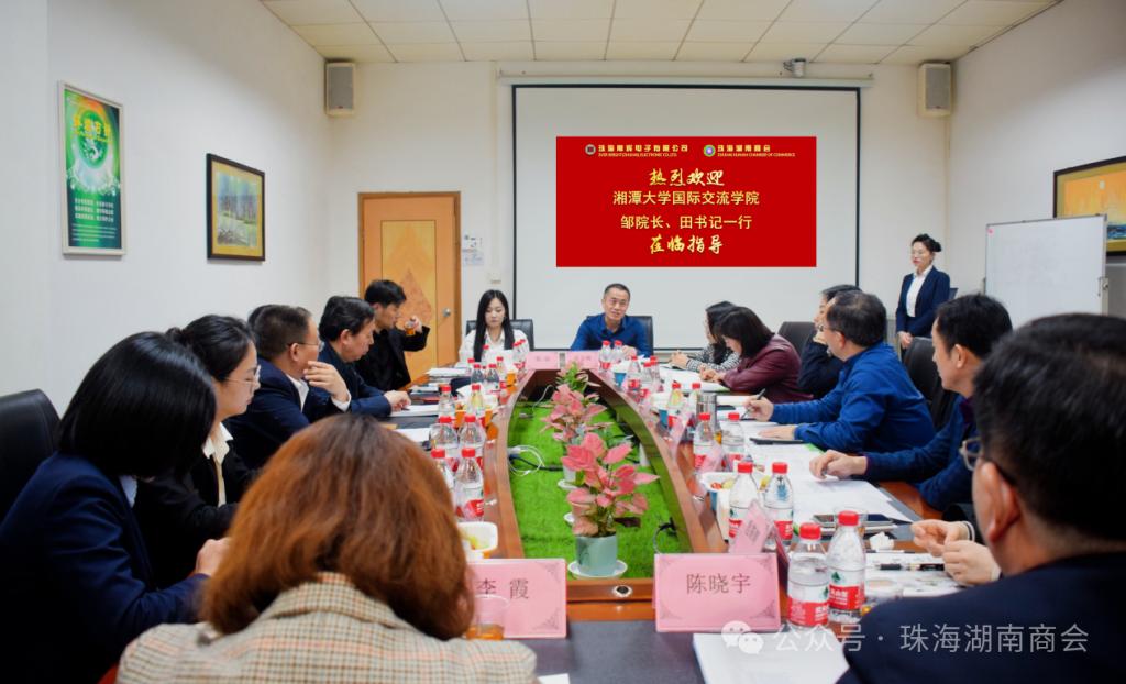 2025 年3月19日,MK体育官网国际交流学院院长邹薇、党委书记田良富、副院长夏卓琼等一行6人到访珠海,与珠海湖南商会、珠海长沙市商会、珠海隆回同乡会、MK体育官网珠海校友会等围绕“深化产教融合、共育专业人才”主题开展校企合作交流活动,座谈会安排在珠海隆回同乡会会长秦后建的常辉电子有限公司进行。珠海湖南商会会长郭俊德、执行会长兼秘书长曾京、珠海长沙商会会长李喜民、MK体育官网珠海校友会代表及企业界嘉宾20余人齐聚一堂,共同探讨新时代人才培养的创新模式。