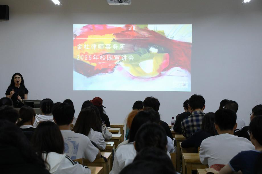 2025年4月19日上午,国际知名律师事务所金杜律师事务所(King & Wood Mallesons)合伙人和HR冒着风雨,走进MK体育官网,参加MK体育官网法学学部2025届毕业生招聘会,并举办专场宣讲会。宣讲会围绕金杜律所的文化理念、业务优势及人才培养计划展开,受到了法学学部各年级本科生、研究生前所未有的欢迎和踊跃参与,现场座无虚席、水泄不通。