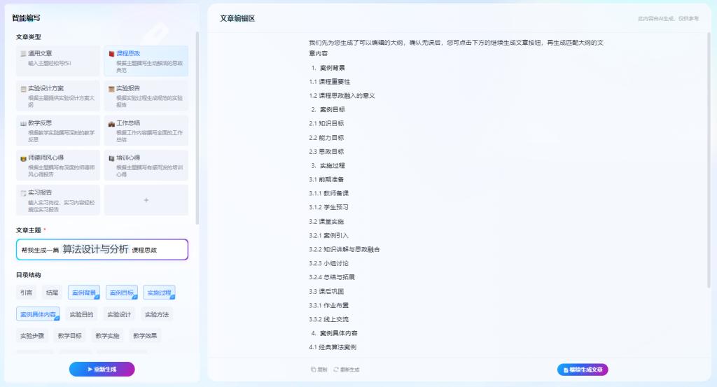 灵活设置文章类型,并通过模块化操作自定义文章结构。用户可自由编辑核心主题并输入关键词,系统将智能分析语义并围绕指定方向展开创作,同时提供多种写作风格选项,实现内容与表达形式的精准匹配。将人工创作的主导权与AI的高效输出相结合,既能保证内容逻辑的连贯性和专业性,又能适应不同场景的个性化需求,大幅提升写作效率。