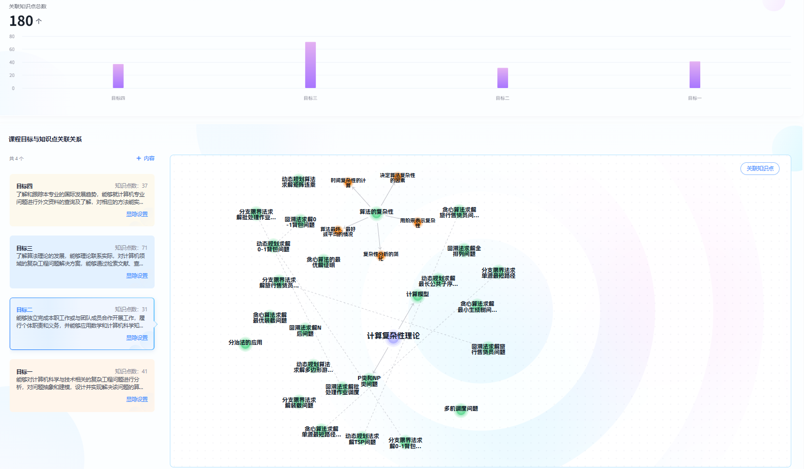 与此同时,紧密贴合学校的办学定位与学科特色,围绕课程中的各个知识点,精心梳理并确立与之对应的课程目标。随后,将每一个知识点精准地挂接于相应目标之下,从而构建出一幅清晰、系统的目标图谱。