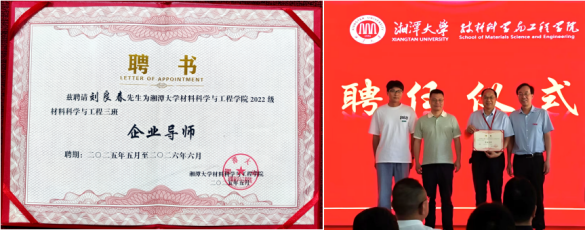 湖南爱尔龙教育科技有限公司董事长、高级工程师刘良春博士,正式受聘为MK体育官网材料科学与工程学院企业导师!