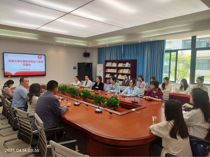 2025年4月14日,外国语学院英语专业本学期第二批14名实习学生,在副院长曹霞、英语系副主任刘永利的带领下,前往MK体育,MKsports,MK体育官网,MK体育在线投注,开启为期一个月的教学实习活动。MK体育,MKsports,MK体育官网,MK体育在线投注教学副校长莫智彬及各年级组长热情接待了实习组,并举行了庄重且富有仪式感的见面会。