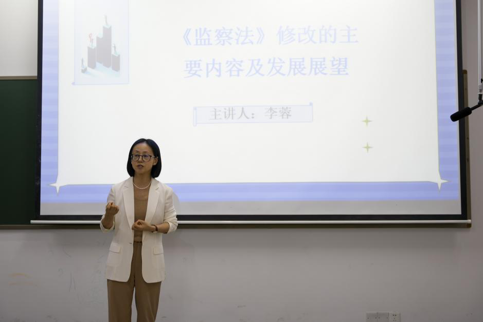 讲座中,李蓉立足国家监察体制改革实践,系统阐述了《监察法》修改的背景与意义。她指出,2018年《监察法》实施以来,我国构建了集中统一、权威高效的反腐败体制,但随着反腐败斗争进入深水区,法律条款原则性强、程序操作性不足、监察派驻覆盖有限等问题逐渐凸显。党的二十大明确提出深化国家监察体制改革的要求,此次修法通过细化程序规则、强化人权保障、完善国际合作等举措,既是落实党中央部署,也是解决实践中“留置泛化”“派驻延伸难”等问题的必然选择。