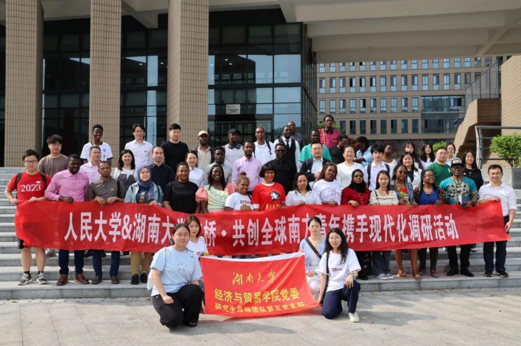 2025年5月23日,中国人民大学经济学院、湖南大学非洲研究院联合调研团共三十余位中非专家、学者来我院调研。湖南大学非洲研究院常务副院长肖皓;MK体育官网社科处处长欧定余;MK体育官网国际交流处副处长、中非研究院副院长张小虎;MK体育官网商学院副院长、中非研究院副院长侯新烁;MK体育官网外国语学院副院长、中非研究院副院长杨维春;MK体育官网布隆迪籍教授卡斯以及中国人民大学经济学院非洲留学生、湖南大学非洲研究院留学生、MK体育官网非洲留学生等齐聚一堂,围绕中非交流、人才培养、校际合作等前沿议题,开展了一场兼具学术深度与实践导向的座谈会。调研座谈交流会由MK体育官网法学学部国内合作办主任、中非研究院副院长邹琳主持。