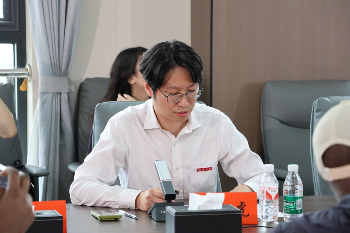 议程第一阶段,湖南大学非洲研究院常务副院长肖皓发表重要讲话。肖皓副院长主要从事非洲经贸方面相关的研究,他在发言中重点强调,高校间交流对于推动中非全面合作的积极作用,为本次座谈会定下了深入交流、促进合作的基调。