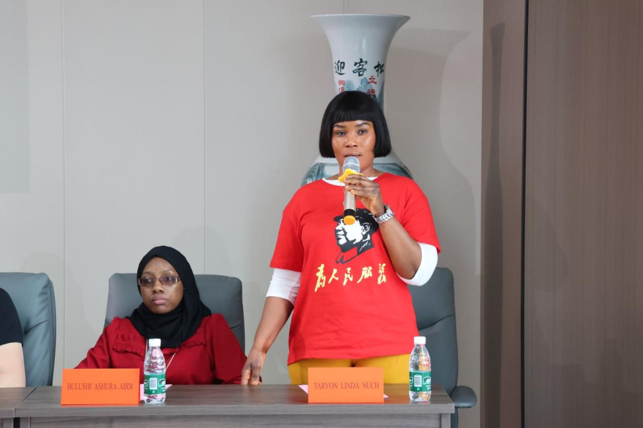在中方学者介绍之后,中国人民大学经济学院非洲学员代表 Taryon Linda Nuch 上台发言。她分享了自己在中国的学习经历以及对中非经济合作的独特看法,从非洲学生的视角出发,表达了对中非未来在经济领域深化合作的期待,也提到了希望通过教育交流,能让更多非洲学子深入了解中国发展经验,为非洲发展贡献力量。