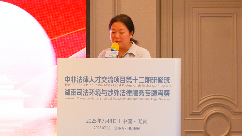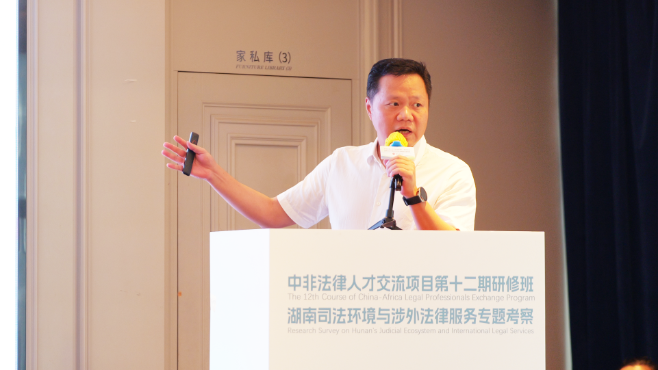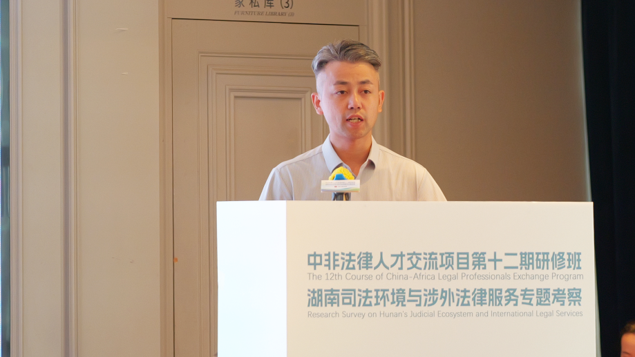 随后,万商天勤海口办公室曹志宇律师带来题为《湖南司法环境现况介绍》的分享,从湖南司法体系结构、司法改革重点举措等六个方面,系统梳理了湖南近年来在司法机制优化方面的积极探索与成效。他指出,湖南正努力打造更加公正、高效、便捷、现代的司法体系,非洲大陆许多国家也正走在司法改革的道路上,中非双方可以共同成长。