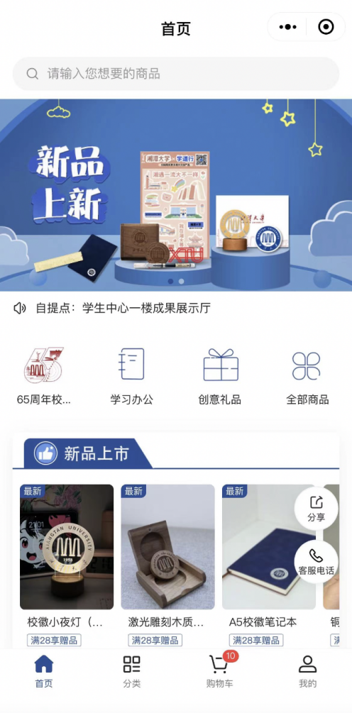 MK体育官网校友线上商城经过MK体育官网授权,大家可在校友商城中了解到所有在售的湘大文创纪念商品,可直接在线下单,线上商城支持全国范围内快递配送,下单后24小时内即可发货。目前已经开发超过20款商品,涵盖学习用品、办公用品、文创礼品、纪念品等,同时校友商城每月都会给大家带来最新的文创纪念商品,大家可持续关注校友会公众号及小程序了解最新信息。