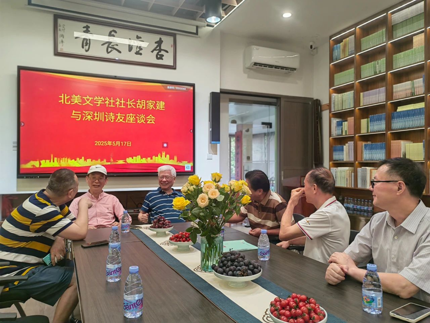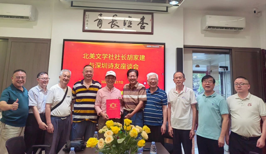 交流尾声,校友诗人杨国安、高源、胡家建等以诗相和,留下多首佳作。杨国安《诗迓北美北斗星文学社胡家建社长莅临长青诗社》中“文澜漫卷开新境,谈屑纷飞续古弦”,高源《依国安兄韵欢迎家建兄来深圳》中“此岸吟风连彼岸,大洋不隔半生缘”,胡家建《和国安君》中“唐诗气度融诗境,宋韵清音续管弦”等句,既饱含校友深情,更彰显了中华诗词跨越地域的文化感染力,成为此次文化交流的诗意注脚。