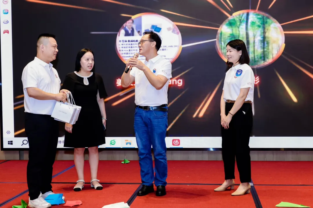 活动中间还安排了游戏环节,分为“初相识”“新起点”和“向前进”三个篇章。校友们分组先进行自我介绍,共同商议队名、队歌和口号,在欢声笑语中迅速拉近了彼此的距离。 随后在互动游戏PK环节,校友们积极参与,现场加油声、欢笑声此起彼伏。最后由评委们评选出优秀团队,由获奖代表分享了团队合作的心得与收获,让大家深刻体会到团队协作的力量。