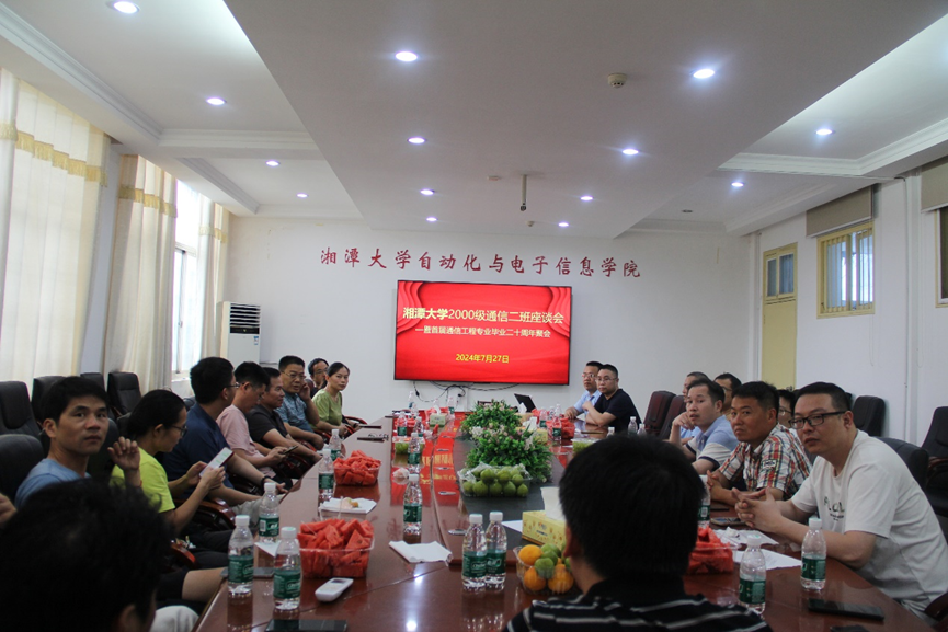 7月27日上午,在母校复校50周年庆典前夕,2000级通信2班学子携亲朋重返母校,欢乐相聚。班级活动以“同窗二十砺前行,凝心聚首续新篇”为主题,由班长吴臣军主持,自动化与电子信息学院院长姚志强,党委副书记郭凤安,原信息工程学院院长刘任任、原通信系主任刘奇能和田淑娟教授等5位老师受邀出席了此次活动。